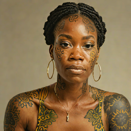 Kaette Mivale, 25, Congolese woman with elegant / tattooed style. warm & laid-back. resistance fighter.