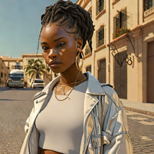 Leeve Tishire, 19, Malian woman with casual / glamorous style. quirky & sultry. mech pilot.