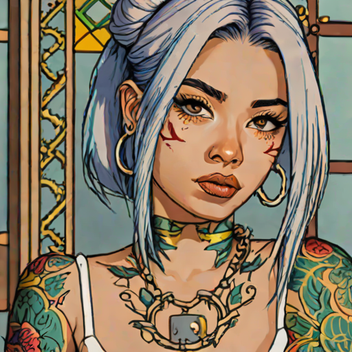 Chloe Nguyen, 25, Georgian woman with cyber-enhanced body aesthetic / tattooed style. dangerous & bold. necromancer.