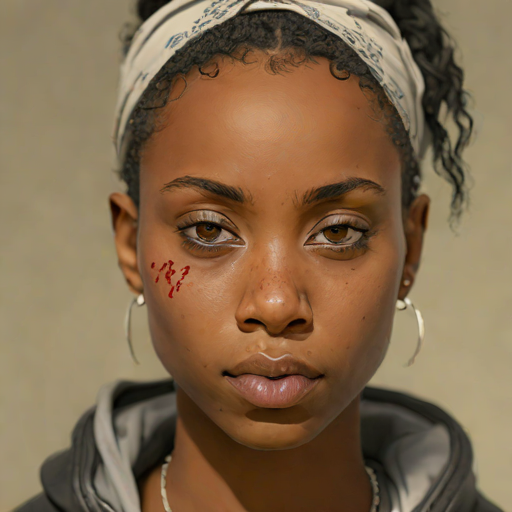 Phoenix Lee, 25, Somali woman with punk / anime-inspired proportions style. extroverted & experimental. crime boss.