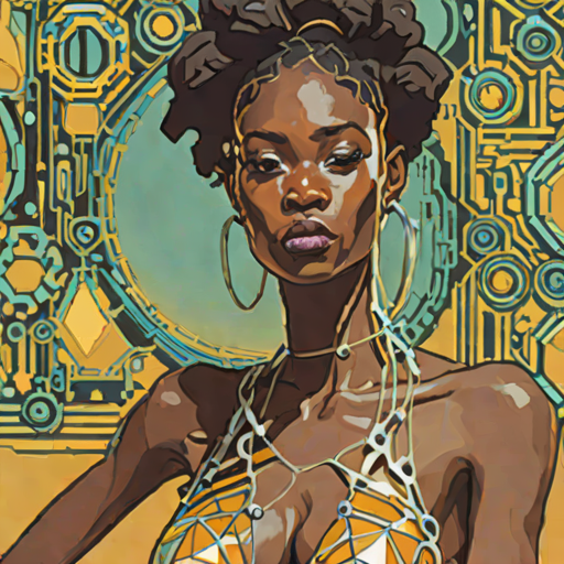 Yaora Koley, 25, Angolan woman with cyber-enhanced body aesthetic / artsy style. magnetic & analytical. therapist.