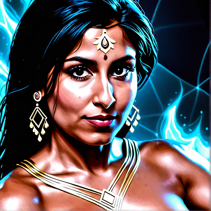 Anjali Singh, 50, Indian woman. retro style. assertive, curious. content creator.