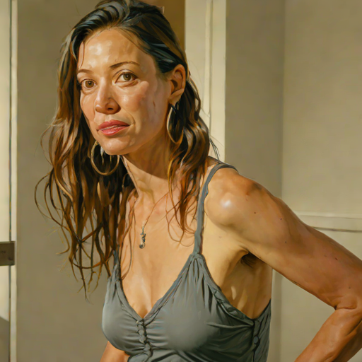 Olivia Campbell, 25, Caucasian woman with exaggerated curves (stylized) / casual style. dreamy & intense. medium.