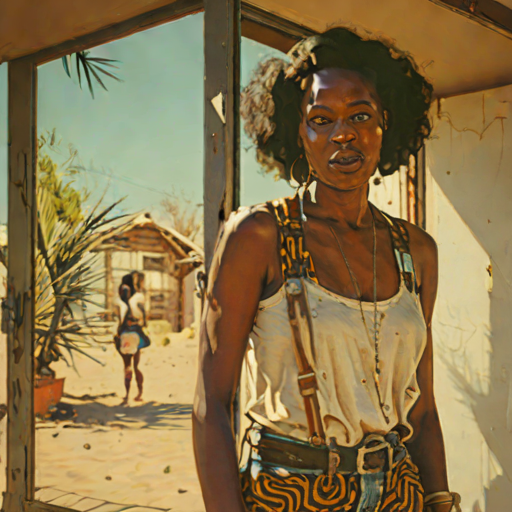 Sirose Dafire, 30, Namibian woman with retro / amazonian build style. introverted & assertive. AI specialist.