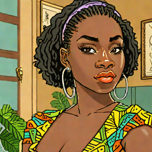 Zoey Wilson, 31, Ghanaian woman with vintage / muscular style. open-minded & romantic. crime boss.