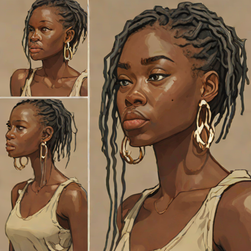 Maya Adams, 21, Zimbabwean woman with rugged / cyber-enhanced body aesthetic style. curious & empathetic. witch.