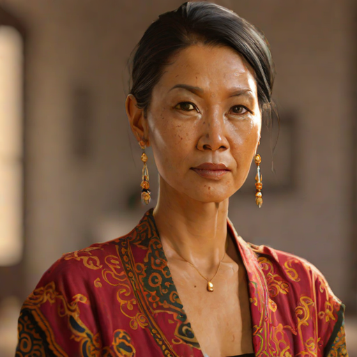 Lily Robinson, 49, Bhutanese woman with edgy / retro style. adventurous & experienced. necromancer.
