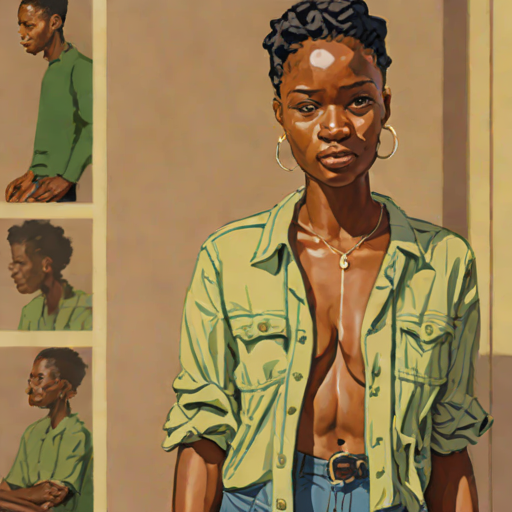 Amara Okafor, 25, Nigerian woman with retro / sporty style. bold & witty. engineer.