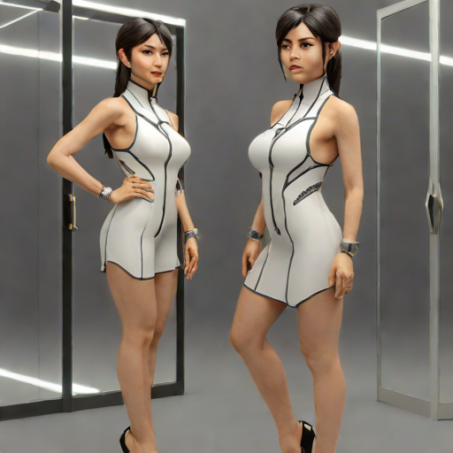 Lerose Lamaby, 25, Singaporean woman with augmented, futuristic physique / exaggerated curves (stylized) style. spontaneous & enchanting. starship captain.