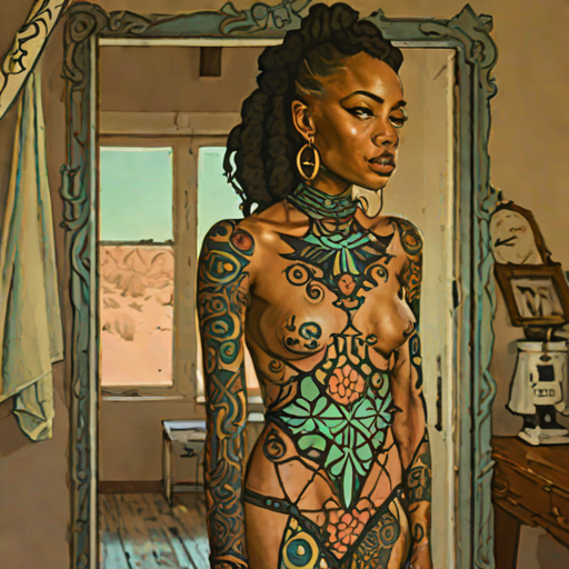 Skylar Nelson, 21, Namibian woman with tattooed / classic style. cool & analytical. researcher.