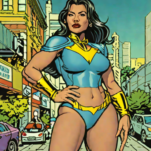 Ava Rivera, 29, Southeast Asian woman with exaggerated curves (stylized) / amazonian build style. enchanting & curious. supervillain.