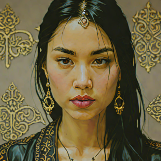 Grace Evans, 30, Uzbek woman with grunge / goth style. teasing & creative. knight.