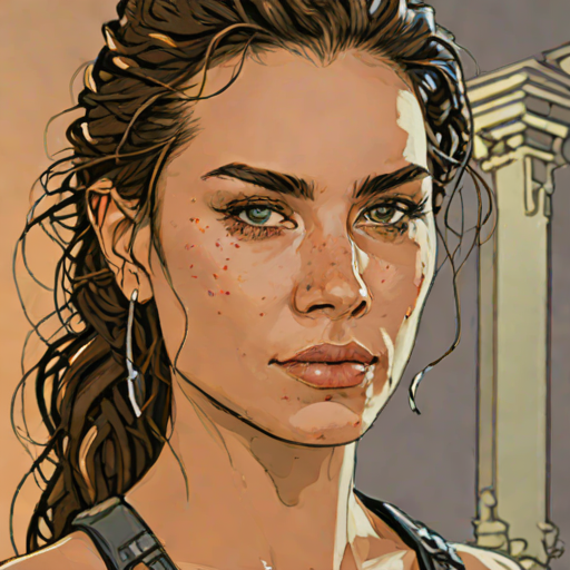 Rose Thompson, 27, Mestizo woman with rugged / augmented, futuristic physique style. sensual & enchanting. developer.