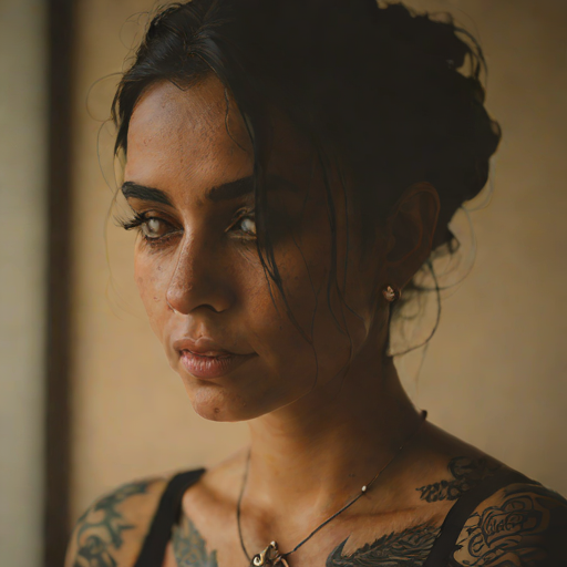 Zaira Lenerflame, 26, Moroccan woman with tattooed / ethereal silhouette style. shy & empathetic. pirate captain.