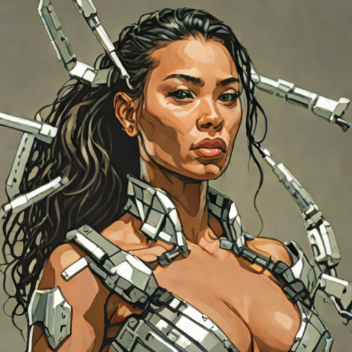 Rowan Torres, 33, Tongan woman with augmented, futuristic physique / athletic style. quirky & curious. makeup artist.