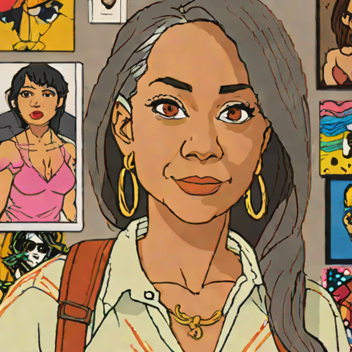 Chloe Young, 59, Puerto Rican woman with casual / edgy style. reserved & forbidden. cryptid researcher.