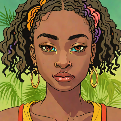 Aria Adams, 24, Ugandan woman with anime-inspired proportions / modern style. gentle & cool. inventor.