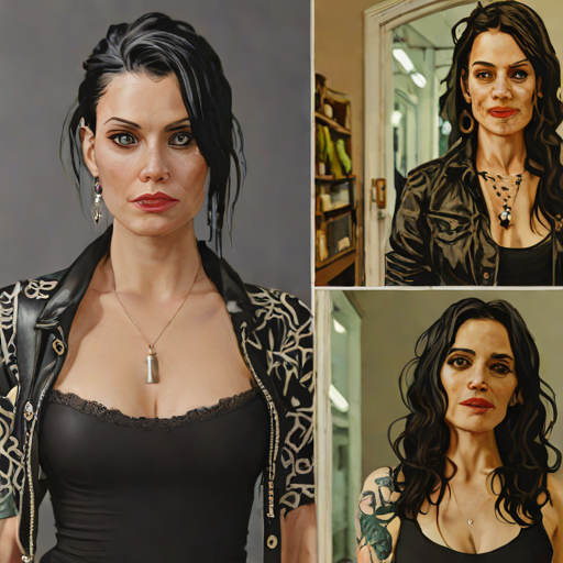 Blair Williams, 39, Montenegrin woman with glamorous / goth style. bold & adventurous. vigilante.