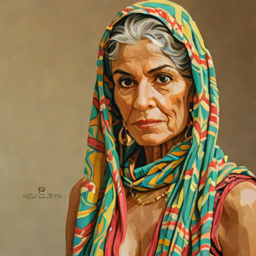 Rania Khan, 64, Middle Eastern woman with muscular / cyber-enhanced body aesthetic style. ambitious & charismatic. rogue.